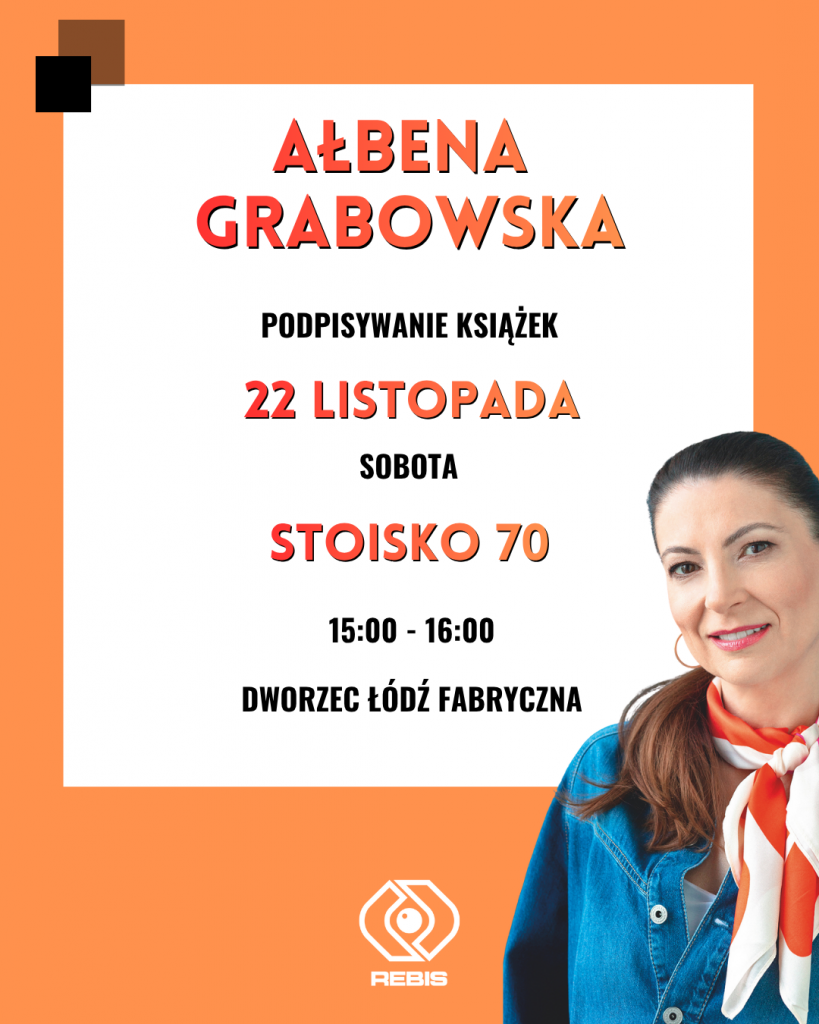 W rebisowej ofercie targowej znajdziecie najnowsze tytuły, bestsellery oraz wyjątkowe promocje i rabaty. W sobotę nasze stoisko odwiedzi Ałbena Grabowska – to szansa dla tych, którzy jeszcze nie zdobyli autografu pisarki.